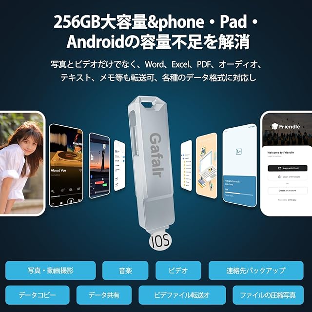 【スマホ/PC容量不足の対策&256GB大容量】このUSBメモリは2568GBの大容量を誇り、Phone、USB、Type-Cとmicro-usbの接続タイプのスマホやタブレットのストレージ容量を素早く解放し、容量不足によるデバイスの遅延問題を効果的に解消します。このPhone写真usbメモリをPhoneまたはPad、Type-Cとmicro-usbの接続タイプのスマホなどに接続すると、写真、映画、ビデオ、メモを直接再生することができます。