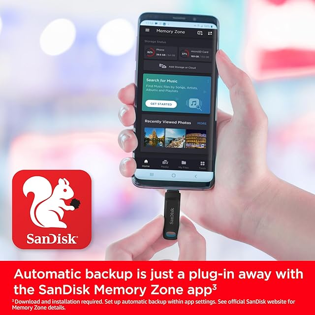 USB Type-Cスマートフォンのスペースを解放して、より多くの写真を撮ることができます(モバイルデバイスにはUSB Type-CポートとOn-The-Go(OTG)サポートが必要です。 互換性のあるデバイスのリストについては、SanDiskのウェブサイトをご覧ください。)
