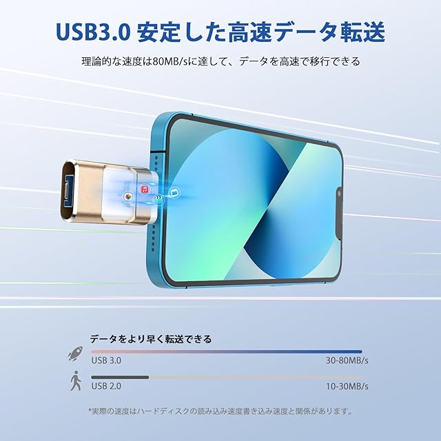 【高速でデータ転送・12ヶ月間】USB2.0により、USB3.0のUSBメモリーはより高速で、データが多くても、より短い時間で転送できます。高速的なテクノロジー時代に欠かせないiPhone対応USBメモリーです。USBメモリーの読み込み速度は30-80MB/sに達することができ、書き込み速度は10-30MB/sに達することができます。(実際の速度はハードディスクの読み込み速度、書き込み速度と関係があります)。こちらのiPhone対応USBメモリ128GBは1年間の品質と購入後の3ヶ月内で初期不良の交換サービスを行っておりますので、安心してご購入頂けます。初期不良および使用中の故障がございましたら、各種対応をさせて頂きますのでご安心ください。