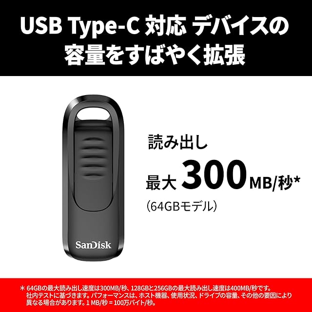 【 サンディスク 正規品 】メーカー5年 USBメモリ 64GB USB Type-C iPhone15動作確認済み 収納式コネクター SanDisk Ultra Slider 読取最大300MB/秒 SDCZ480-064G-J35