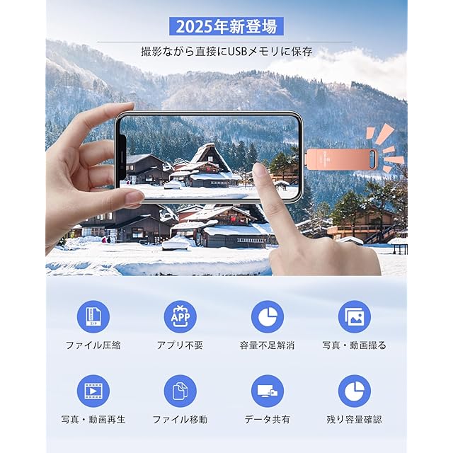 【高耐久性・24ヶ月間品質】アイフォン用 usbメモリ本体は高級感のある亜鉛合金製であるため、耐久性と安定性に優れています。360°回転保護キャップデザインにより、キャップの紛失を防ぎ、90°スタックします。ポイント設計により、ドライブがランダムに回転することを回避します。ハンギングリングを使用して、サムドライブUSBCをキーチェーンに掛けることができます。こちらの24ヶ月間の品質と購入後の3ヶ月内で初期不良の交換サービスを行っております。ご安心してご購入頂けます。