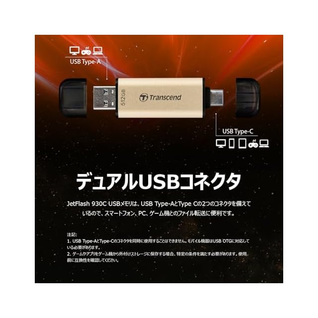 トランセンドジャパン トランセンド 高速・高耐久USBメモリ 512GB USB 3.2 Gen1 Type-A/Type-C 両対応 PS4/PS5 動作確認済 (最大転送速度420MB/s)【データ復旧ソフト無償提供】TS512GJF930C