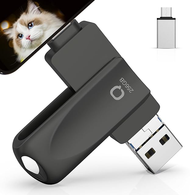 【アプリ不要 2025年大歓迎モデル】iPhone対応 USBメモリ アプリ不要 256GB 4in1 iPad対応 usbメモリー 高速 データ バックアップ iOS/USB/Type-C/Micro USB搭載 外付け usb 写真保存 スマホ容量不足解消 回転式 Phone/PC/Android/Mac/ipad対応 黒 Phone 15/14/XS/Pad Air/Proなど対応