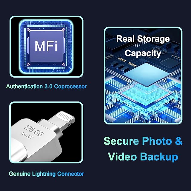 【本物のApple MFi認証】Apple MFi取得した正規品。128GBアイフォン メモリースティックの互換性と安全性をし、非認証USBメモリにありがちなデータ破損やiOSエラーの心配は一切ありません。あなたの大切な写真・動画・連絡先を守るために、近道やごまかしのない「本物のMFi認証iPhone用USBメモリ」をお選びください。