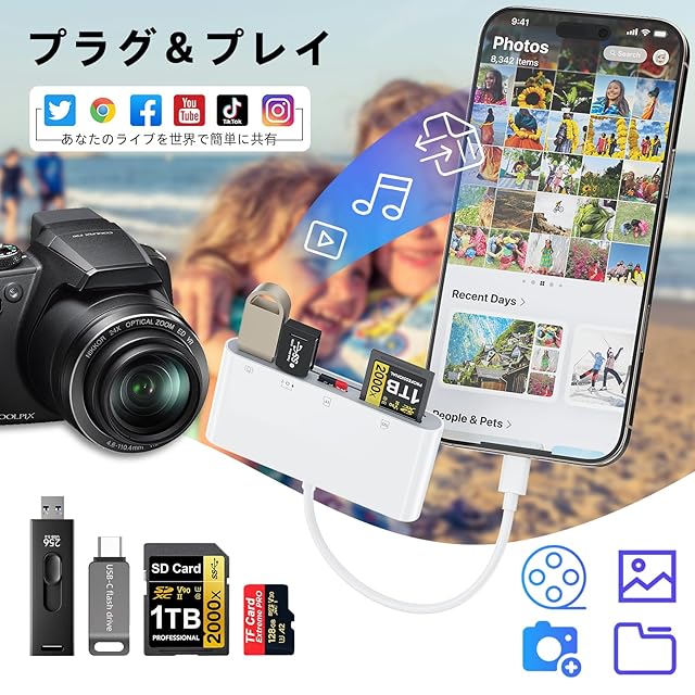 【コンパクト設計・携帯に便利】この タイプc カードリーダー は、コンパクトで軽量なデザインが特徴です。ポータブルで、ビジネスバッグやポケットに簡単に収まるため、外出先でも気軽に使用できます。また、耐久性も高く、頻繁な使用にも耐える構造となっています。オフィスやカフェ、出張先でも活躍するこのスマホ sdカードリーダーは、ビジネスや個人利用においても信頼できるパートナーです。