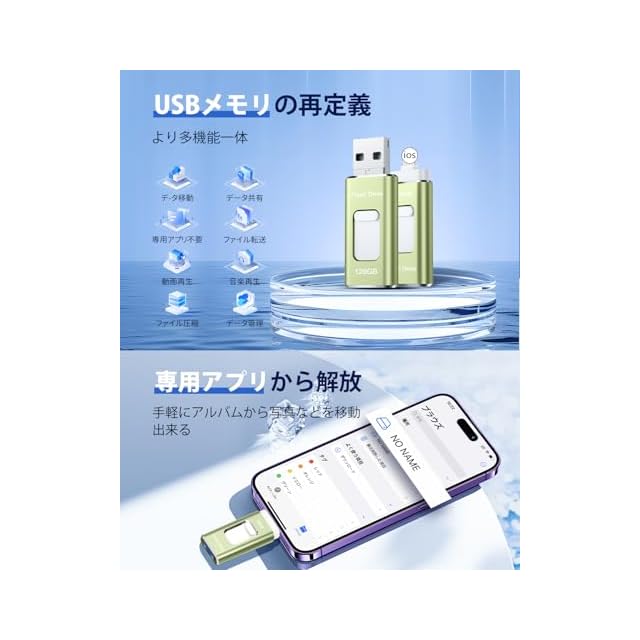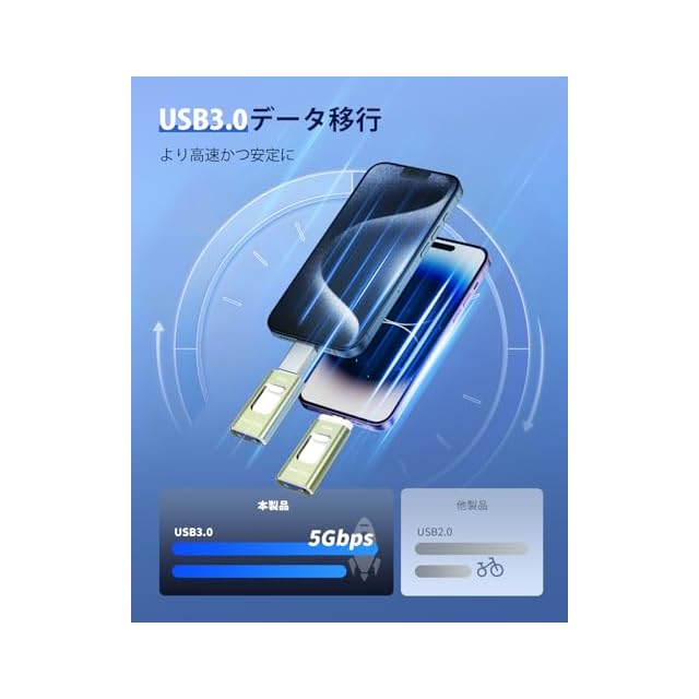 【簡単データ管理・容量不足解消】 phone用外付けメモリシンプルで使いやすいデザインと、初心者でも簡単に操作できます。プラグアンドプレイの機能で、手間がかからず、スムーズなデータ移行が可能です。写真、ビデオ、音楽、ドキュメントなどのファイルを効率的に整理し、管理することができます。データの整理とバックアップを一括で行い、ストレスを軽減しましょう。スマホ/タブレットに容量不足をすぐに解決できます。PCいらずでも空き容量を確保できます。
