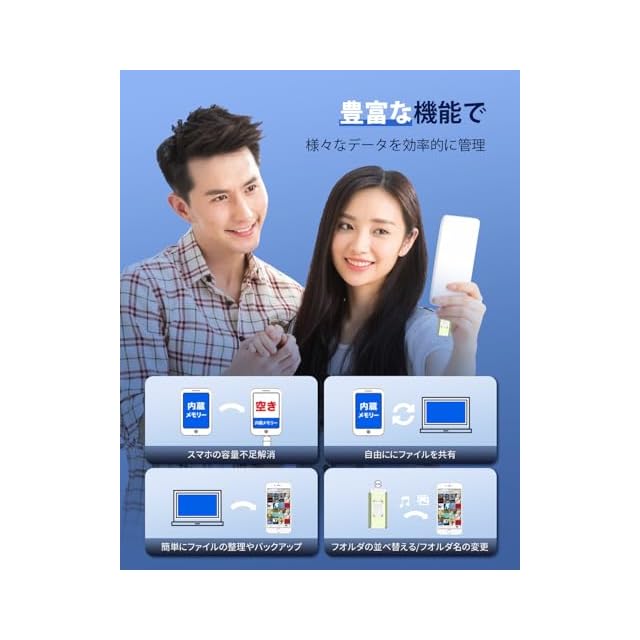 【簡単データ管理・容量不足解消】 iphone用外付けメモリシンプルで使いやすいデザインと、初心者でも簡単に操作できます。プラグアンドプレイの機能で、手間がかからず、スムーズなデータ移行が可能です。写真、ビデオ、音楽、ドキュメントなどのファイルを効率的に整理し、管理することができます。データの整理とバックアップを一括で行い、ストレスを軽減しましょう。スマホ/タブレットに容量不足をすぐに解決できます。PCいらずでも空き容量を確保できます。