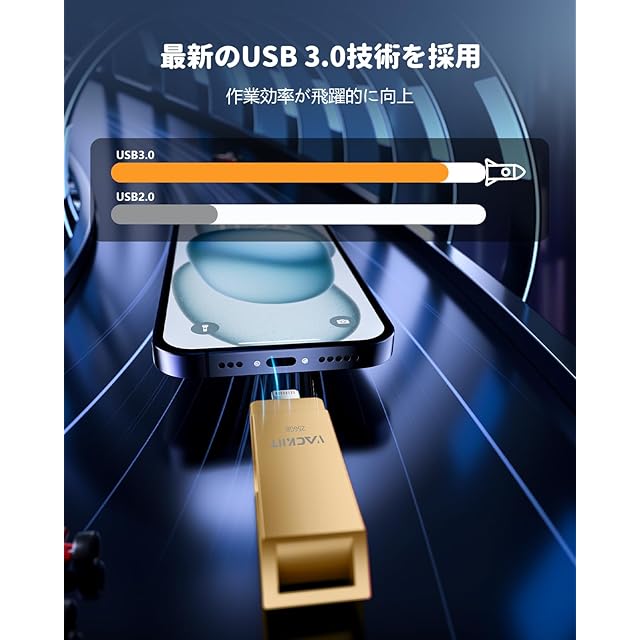 Vackiit 【MFi認証取得】iPhone用USBメモリー 256GB USB 3.0 iphone用外付けメモリ スマホusbメモリ 対応iphone 写真保存 usb iphone兼用 バックアップiPhone/iPad/PC/Android/Mac対応 メモリースティック スマホ容量不足解消(ゴールド)