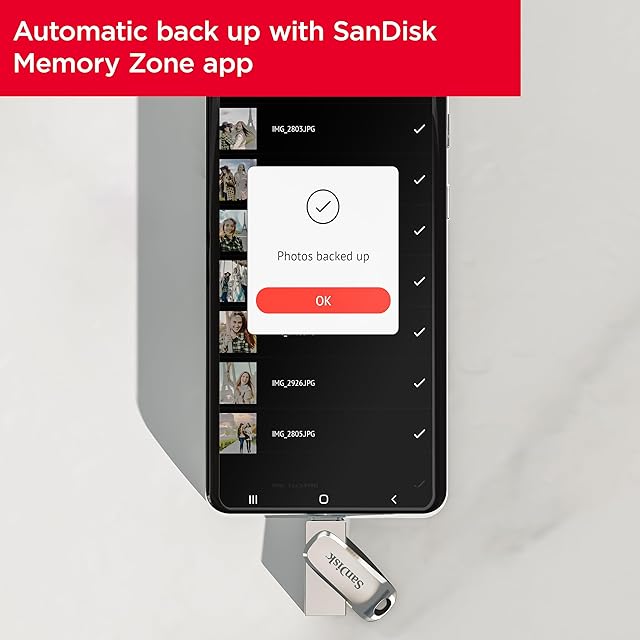 SanDisk Memory Zoneアプリで写真を自動的にバックアップします(SanDisk Memory Zoneアプリのダウンロードとインストールが必要です)。