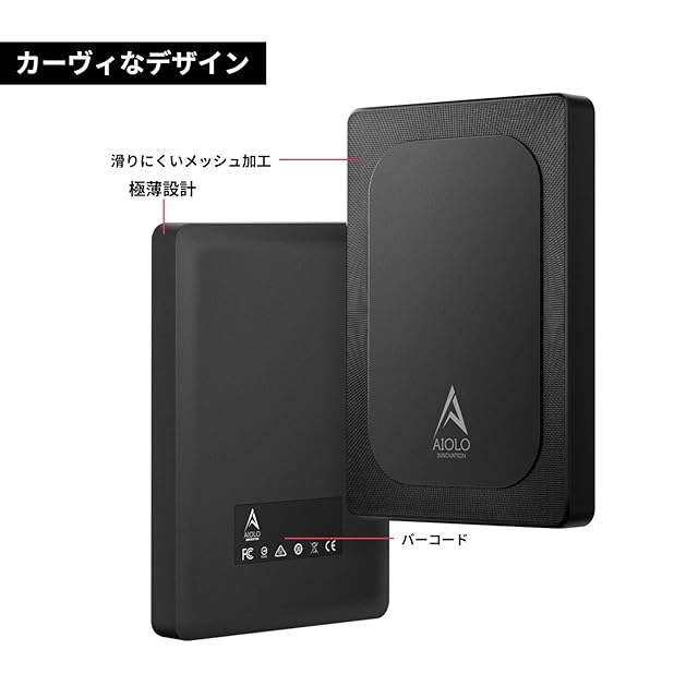 AIOLO INNOVATION 外付けHDD 2TB 3年 超薄型 2.5インチ USB3.2対応 ポータブルハードディスク テレビ録画/PC/Mac/PS4/PS5/XBox対応 Type-Cケーブル付 A4-2T-BLK-A