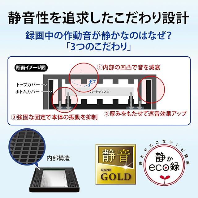 【寝室で使っても音が気にならない!静音性を追求したこだわり設計】寝室など静かな環境でも作動音が気にならないように、静音構造にこだわって設計しました。内部の凹凸で音を減衰し、厚みをもたせて遮音効果アップしています。さらに、強固な固定で本体の振動を抑制し音の発生を抑えました。