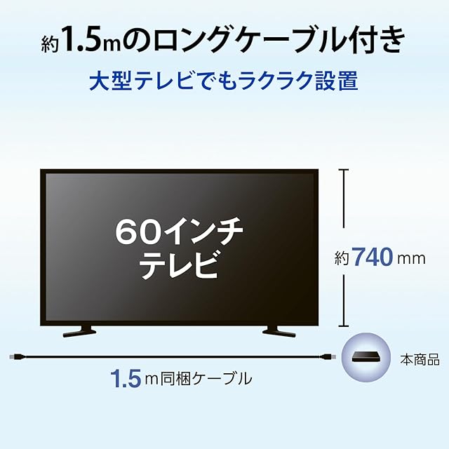 【約1.5mのロングケーブル付き。大型テレビでもラクラク設置】4K録画にも対応した約1.5mのロングケーブル付き。60インチなどの大型テレビでも、ケーブルの取り回しに悩むことなく設置いただけます。