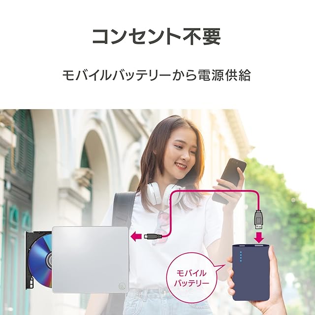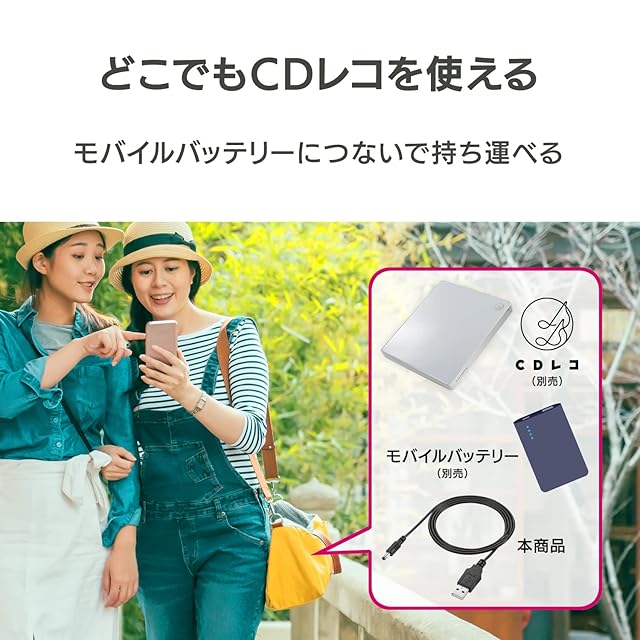 [特徴]スマホ用CDレコーダー「CDレコ」と、スマホ用DVDプレーヤー「DVDミレル」を、モバイルバッテリーと接続するためのケーブル。