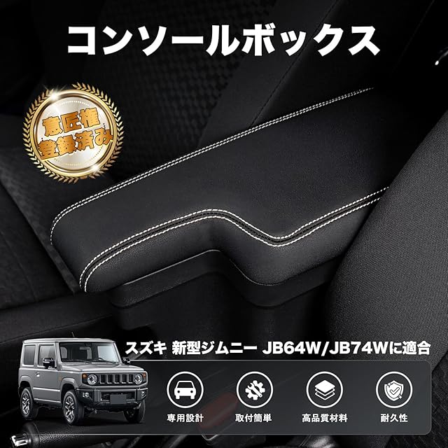 1.【適合車種】:スズキ ジムニー ジムニーシエラ JB64/JB74 に適合。ジムニーノマドには対応していません。(H30.7-現行) ※シートカバーを追加装備したお客様にご注意!シートカバーを追加装着すると、運転席と助手席の間のスペースが狭くなり、アームレストボックスの開閉しにくい場合があります。予めご了承くだいさい。