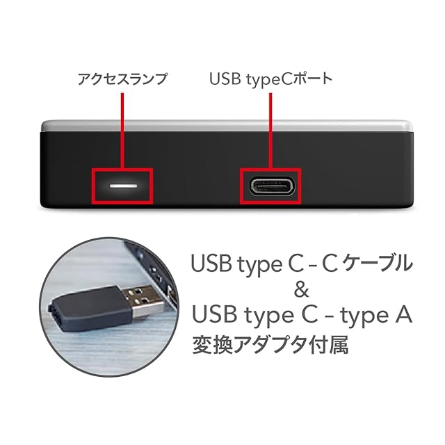 接続規格/ドライブフォーマット形式:USB-C対応、USB 3.0対応/ NTFS