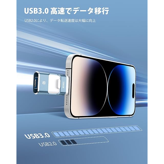 【高速でデータ移行・12ヶ月間】USB2.0により、USB3.0のUSBメモリーはより高速で、データが多くても、より短い時間で転送できます。高速的なテクノロジー時代に欠かせないiPhone対応USBメモリです。USBメモリーの読み込み速度は30-80MB/sに達することができ、書き込み速度は10-30MB/sに達することができます。(実際の速度はハードディスクの読み込み速度、書き込み速度と関係があります)。こちらのUSBメモリ256GBは1年間の品質と購入後の3ヶ月内で初期不良の交換サービスを行っておりますので、安心してご購入頂けます。初期不良および使用中の故障がございましたら、各種対応をさせて頂きますのでご安心ください。