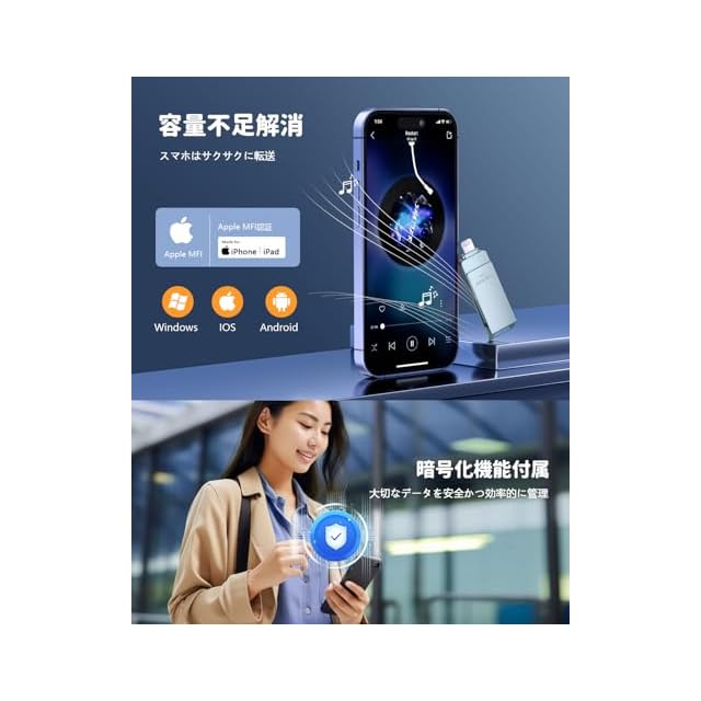 ✔【暗号化機能・USB3.0高速転送】mfi認証iPhone用usbメモリはファイル暗号化技術があるので、プライバシーデータを保護するために自分だけのパスワード/Touch IDを設定でき、ファイルをロックできます。安全性が最高!超小型&軽量なデザインのでどこでも持ち運び便利です。usbメモリ・フラッシュドライブはUSB 3.0 に対応し、最大80MB/Sの読み取り、最大42MB/S書き込み速度が実現されました。大容量データの保存や転送する時、時間と労力を節約することができます。