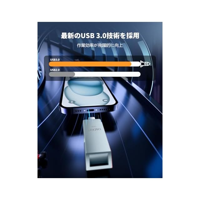 Vackiit「MFi認証取得」iPhone用 usbメモリ128GB phone 写真データ保存 usb iphone対応 高速 USB 3.0 phone用外付けメモリiPhone/iPad/iPod/Win/Mac兼用 タイプc usbメモリ セキュリティ機能付 phoneバックアップ 携帯容量不足解消 グレー