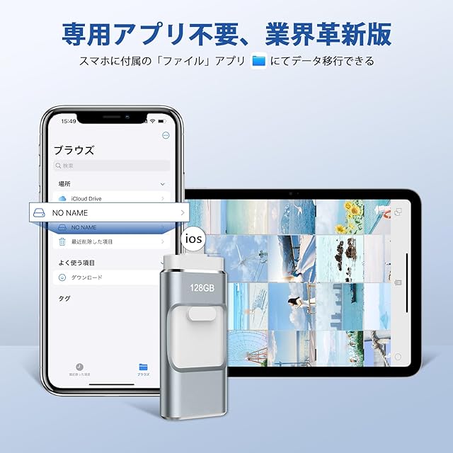 【高速でデータ転送・12ヶ月間】USB2.0により、USB3.0のUSBメモリーはより高速で、データが多くても、より短い時間で転送できます。高速的なテクノロジー時代に欠かせないiPhone対応USBメモリーです。USBメモリーの読み込み速度は30-80MB/sに達することができ、書き込み速度は10-30MB/sに達することができます。(実際の速度はハードディスクの読み込み速度、書き込み速度と関係があります)。こちらのiPhone対応USBメモリ128GBは1年間の品質と購入後の3ヶ月内で初期不良の交換サービスを行っておりますので、安心してご購入頂けます。初期不良および使用中の故障がございましたら、各種対応をさせて頂きますのでご安心ください。