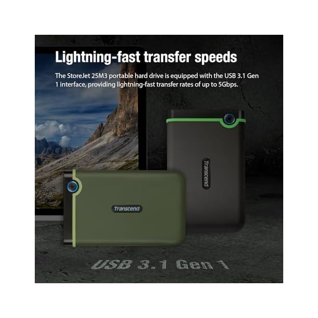 Transcend ポータブルHDD 2TB 耐衝撃 スリムタイプ USB3.1 Gen1 アイロングレー 3年 TS2TSJ25M3S