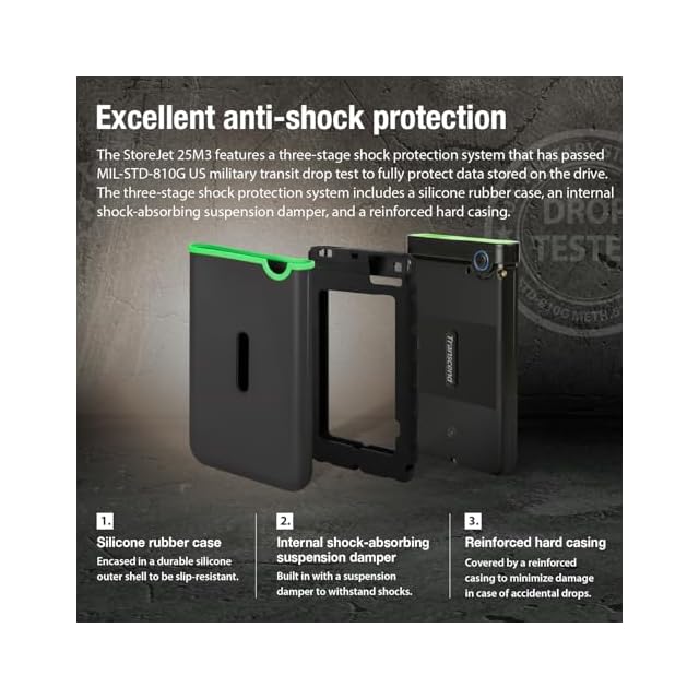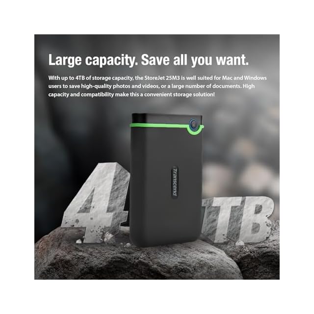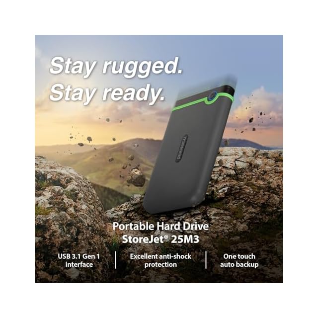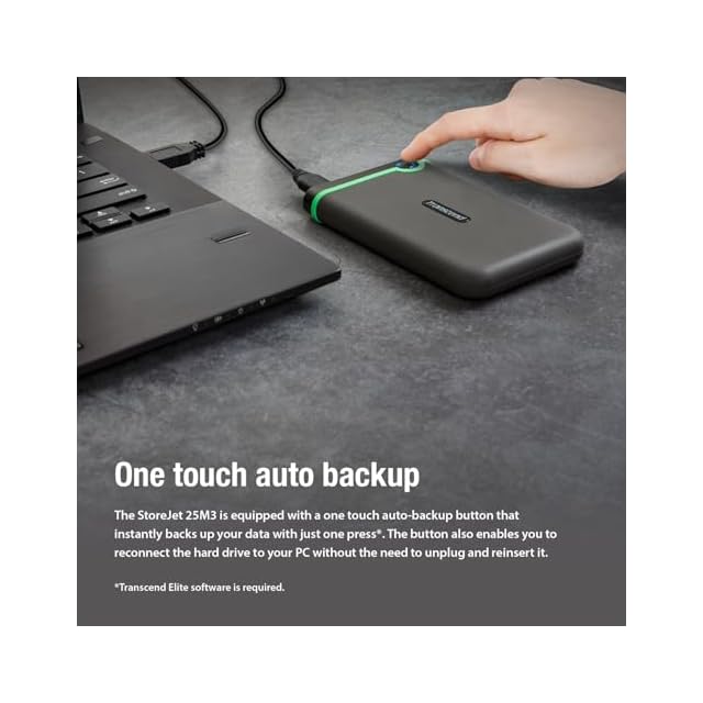 ハイレベルな衝撃耐性を兼ね備えており、ワンタッチで自動バックアップ可能な効率性にも優れた外付けハードディスク。USB3.1。Transcend(トランセンドジャパン)製。3年。TS2TSJ25M3S。2TB。