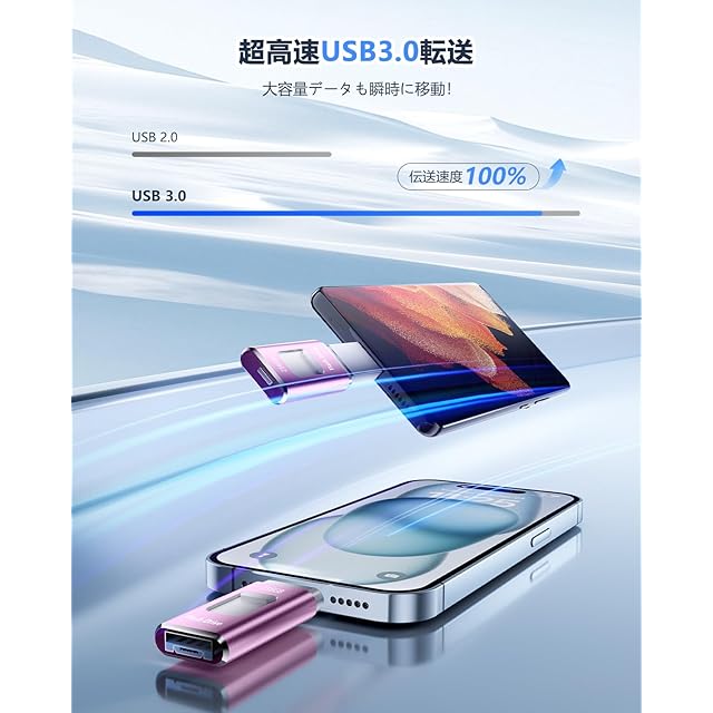 【従来品への飛躍!専用アプリ不要・多機能実現】最新技術で開発したUSBメモリでアプリなど面倒な設定は一切無し、iOS システムに付属のファイル アプリを使用して、挿せば直ぐに使用可能。写真、動画、音楽はもちろん、ExcelやPDFなどの書類データも転送可能、機器の操作が苦手な方でも簡単にデータ移動ができます。スタイリッシュなデザインに加え、便利な機能が満載のスマホ USBメモリーは、スマホと接続すると、音楽再生・写真バックアップ、ファイル圧縮・解凍、動画/画像/資料編集などの機能を果たすことができます。仕事を効率化して、日常生活をより便利にしてくれます。