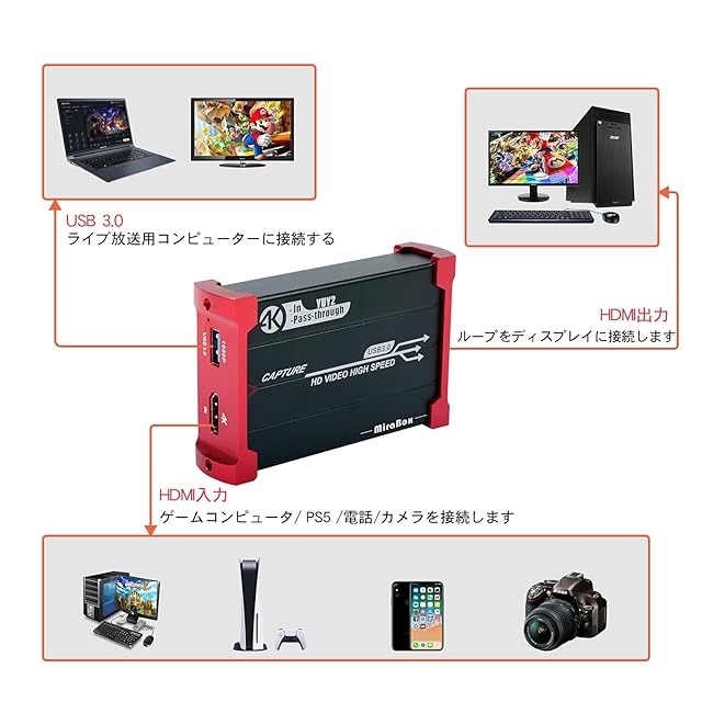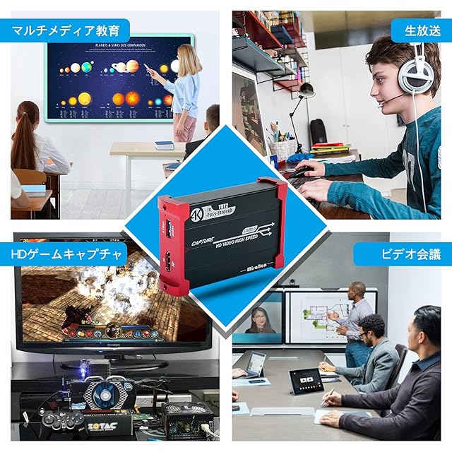 ◆ボイススルー機能◆:マイクを接続で、実況音声や好きな音楽とゲーム音声をミックスし、動画と音声を同期に録画・配信することはもちろん、イヤホンとヘッドホンを接続することもでき、録画したビデオを見る時に、マイクから出た音声が聞こえます。