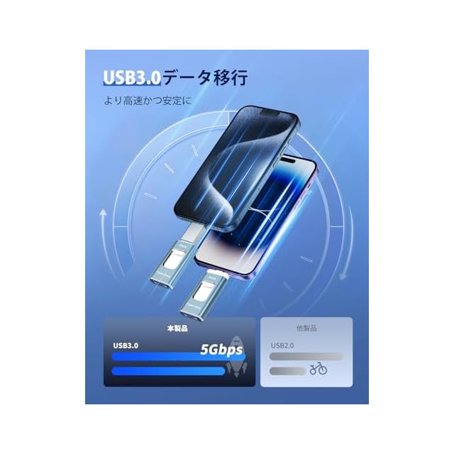 【簡単データ管理・容量不足解消】 iphone用外付けメモリシンプルで使いやすいデザインと、初心者でも簡単に操作できます。プラグアンドプレイの機能で、手間がかからず、スムーズなデータ移行が可能です。写真、ビデオ、音楽、ドキュメントなどのファイルを効率的に整理し、管理することができます。データの整理とバックアップを一括で行い、ストレスを軽減しましょう。スマホ/タブレットに容量不足をすぐに解決できます。PCいらずでも空き容量を確保できます。
