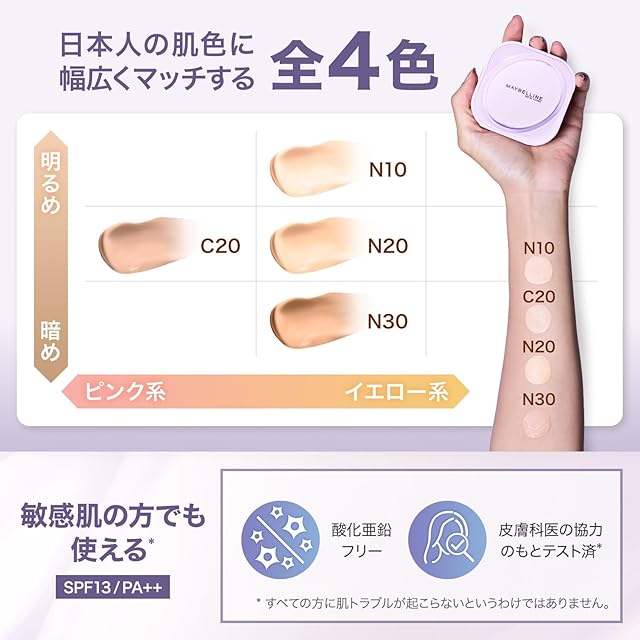 メイベリン MAYBELLINE SPステイ クリームパクト ファンデーション N10 クリーム ハイカバー 敏感肌