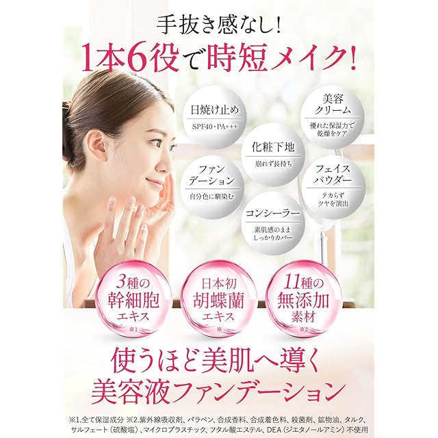 ✨【パーソナライズテクノロジー】: 肌に馴染ませると自分だけの肌色に変化し、シミやしわをカバーして自然な仕上がりを実現します。SPF40 PA+++で紫外線からもしっかり肌を守ります。