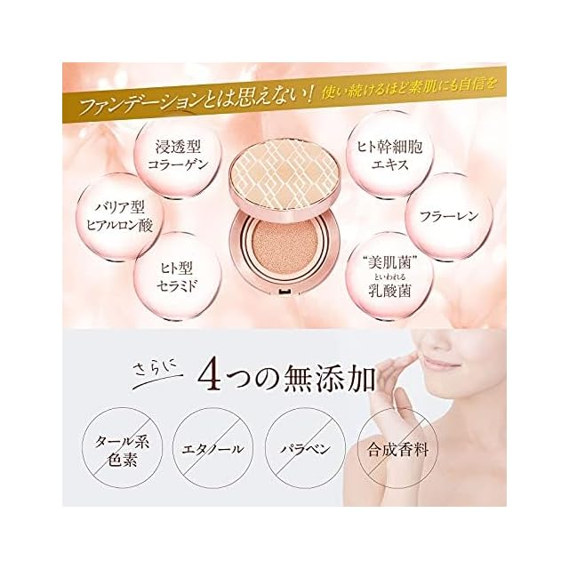 1品6役のクッションファンデーション:エッセンス、UVカット、メイクアップベース、ファンデーション、コンシーラー、コントロール カラーが1品でOKだから、メイクアップ時間を大幅にカット。それにより産みだされた時間を ちょっとしたやすらぎに使うなど、心のゆとりのある生活の実現で内面から美しい人へ。
