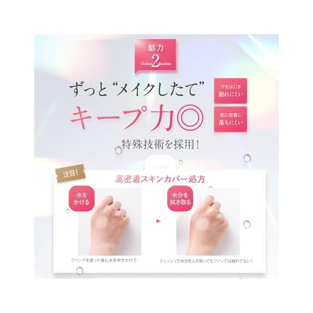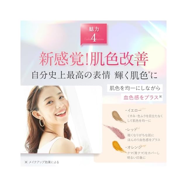 しっかりカバー※で自然なツヤ肌に!厚塗りにならない、自然なカバー※力で若々しい仕上がりに。同時にツヤ感もプラス! ※メイクアップ効果による