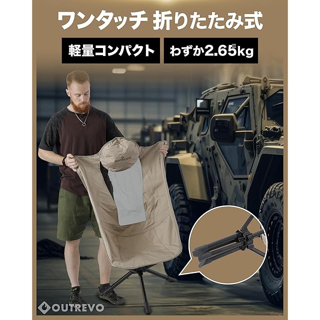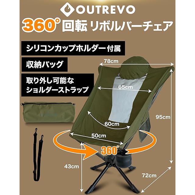 OUTREVO [リボルバープラス] 360度 回転 アウトドアチェア ハイバック 背もたれ コンパクト 軽量 折りたたみ ワンタッチ 椅子 収納袋付き アウトレボ (オリーブ)