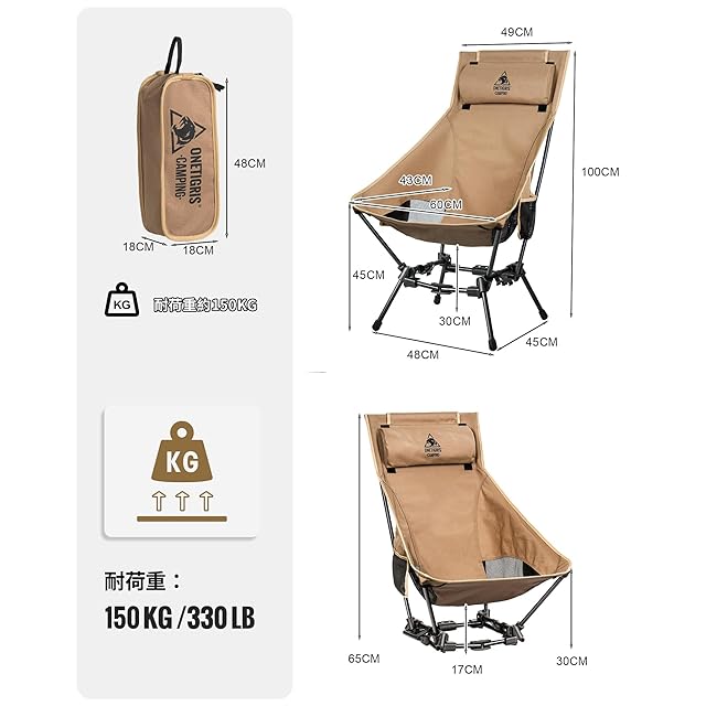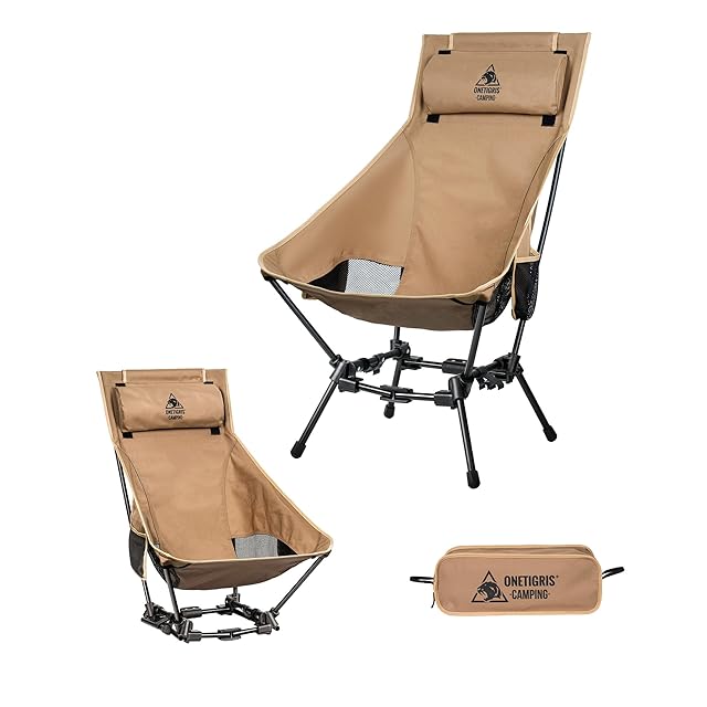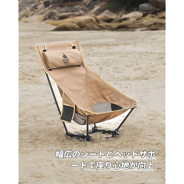 OneTigris Dragonhide アウトドアチェア ハイバックキャンプチェア 2WAY 折りたたみ式ローチェア 着脱式ヘッドレスト付き 耐荷重150kg 安定性アップ 登山 アウトドア用品 (ブラウン)