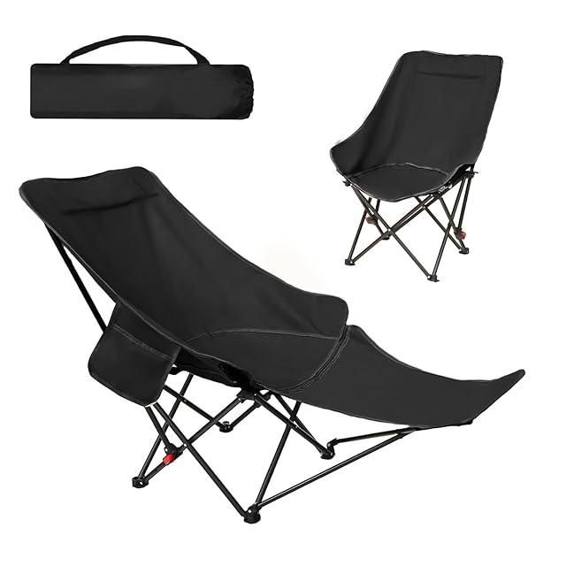 Sunfra リクライニングチェア【超耐荷重120kg&僅か2.5kg】キャンプ 椅子 折り畳み 軽量・コンパクト アウトドアチェア 携帯便利 4段階調整 折りたたみ椅子 ピクニック 仮眠/昼休み/お釣り/キャンプ/アウトドア/バーベキューに適応 枕/収納ポケット付属 ブラック