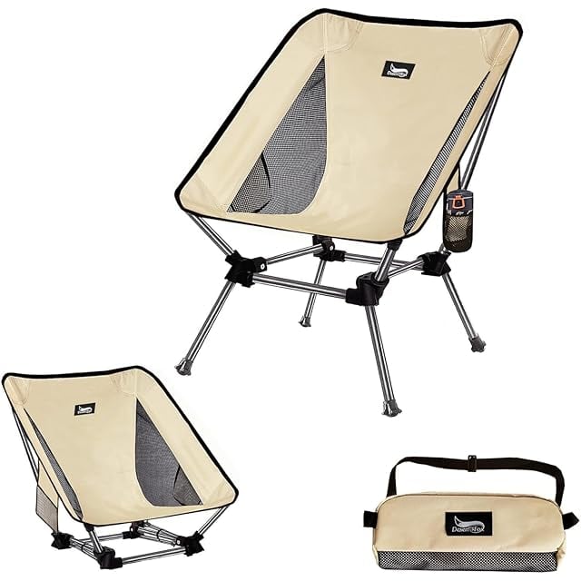 アウトドア チェア 2WAY 高さ調節可能 折りたたみ キャンプ 椅子 軽量 【 独自開発のカップホルダー】 ポケット付き 耐荷重150kg コンパクト イス 椅子 収納袋付属 お釣り 登山 携帯便利 -ST (ベージュ)