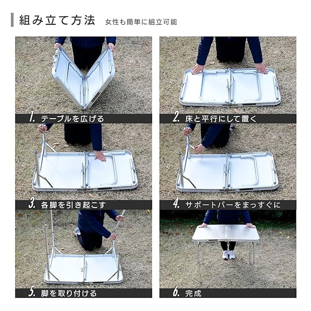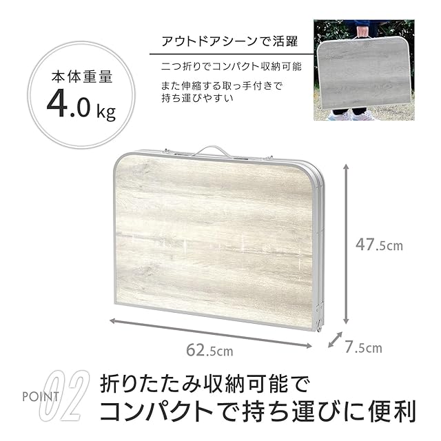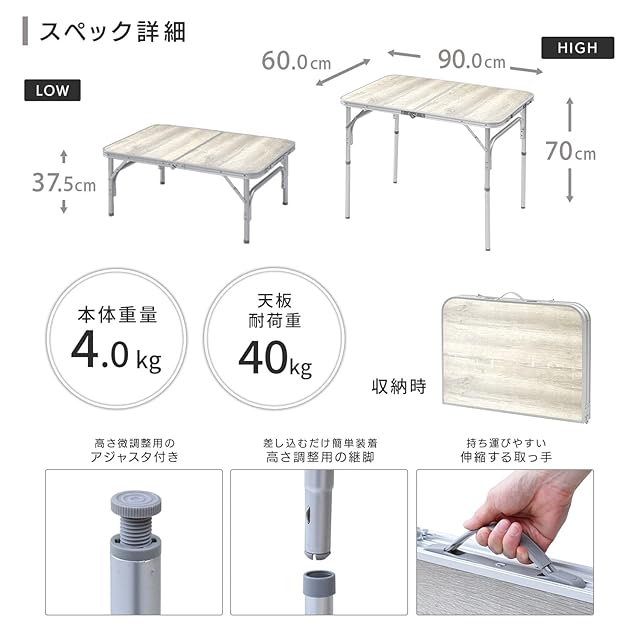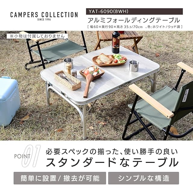 [キャンパーズコレクション 山善] アウトドア テーブル キャンプ アウトドア 熱・水に強い 折りたたみ式 軽量 高さ調整(2段階) 幅90×奥行60×高さ37.5/70cm ホワイト木目 YAT-6090(BWH)