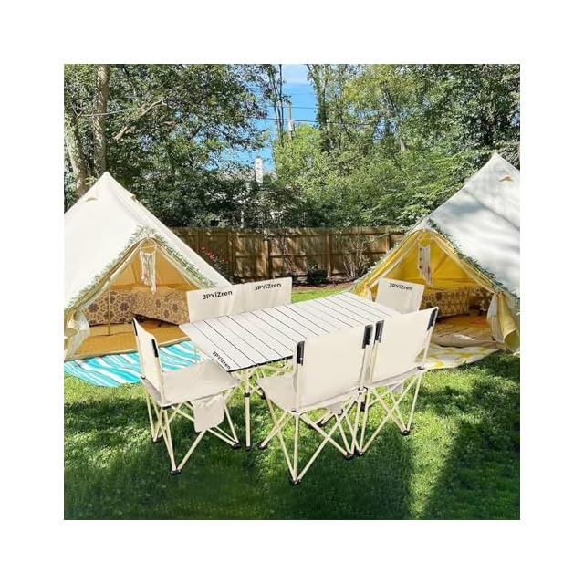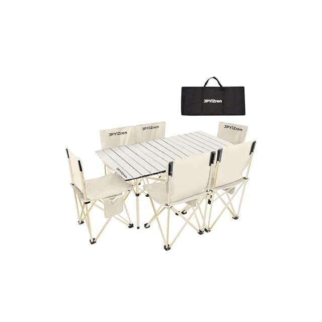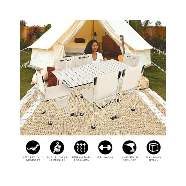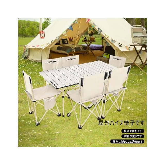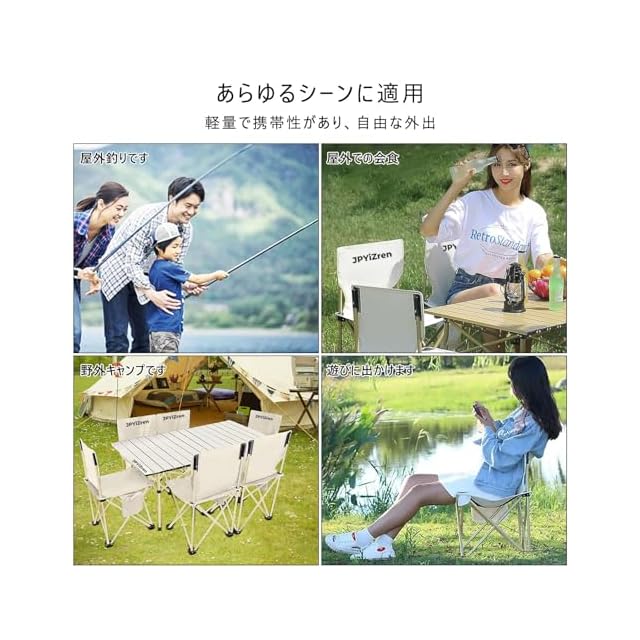 JPYiZren アウトドア テーブル チェア 7点セット アルミテーブル椅子 ピクニック ベンチセット ピクニックテーブル 超軽量 折り畳み 組立簡単 収納バッグ付き BBQ お釣り テント ガーデン 屋外 キャンプ用品 (7, ベージュ)