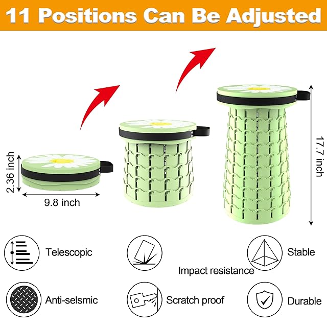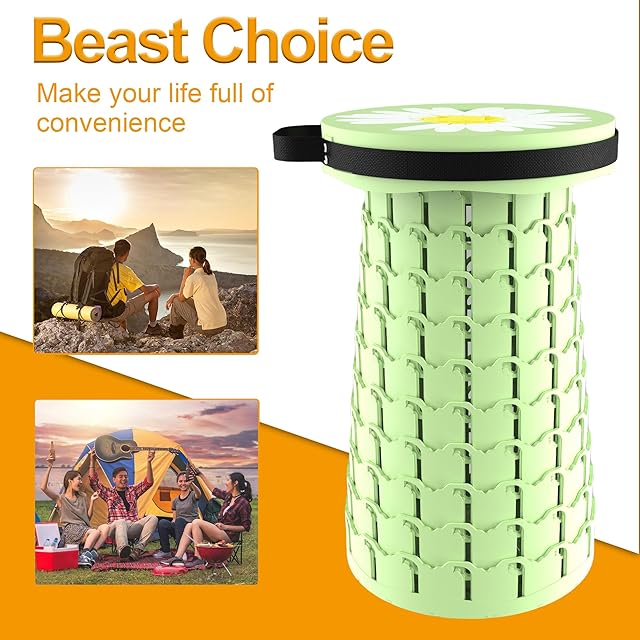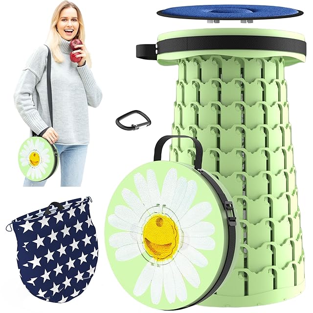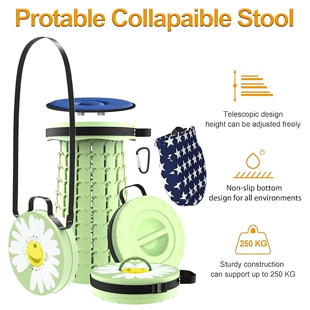LOCYOP 折り畳み椅子 軽量 コンパクト クッションつき 伸縮式チェア 高さは46cmまで調整可能 耐荷重270kg おりたたみいす おしゃれ アウトドア キャンプ 登山 行列待ち 風呂 花見 花火大会 釣り 運動会 室内 屋外用 【クッション、収納バッグ、カラビナ付き】 (グリーンデイジー)
