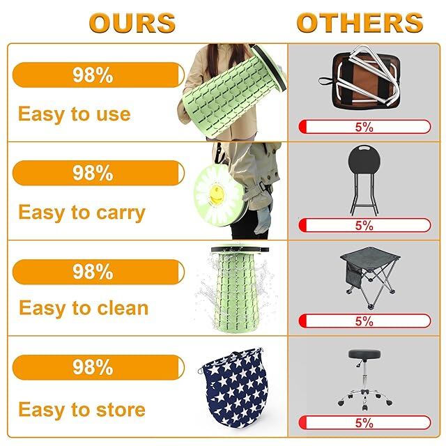 【様々な場所に大活躍】●インドア: 自宅、庭いじり、庭でのBBQ、パーティーにもぴったりです。子供でも大人でも使える、玄関椅子でも使用可能。●アウトドア:キャンプ、旅行、登山、BBQ、野外フェス、花見、花火大会、公園、運動会、行列待ち