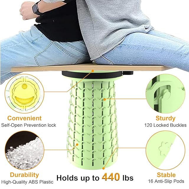 【使い方超簡単・耐荷重200KG】●収納するときは逆方向に少しひねりを入れながらスツールの両端を押すだけで一瞬で収納可能。●伸縮式チェア本体は1kgしかないにもかかわらず、頑丈なABSとポリアミドを採用したので、最大荷重は200kgにも達しています。軽量で携帯しやすくて、構造も安定しています。