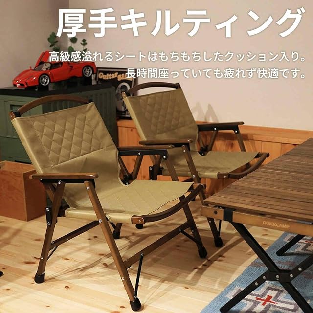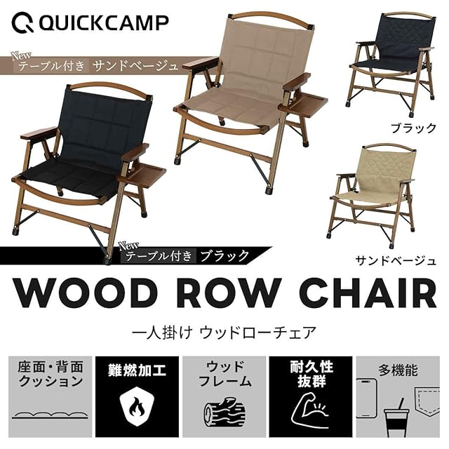 [クイックキャンプ] 一人掛け ウッドローチェア アウトドア ガーデン 折りたたみ椅子 コンパクト 子供 簡易 ガレージ バーベキュー インテリア クッション サンドベージュ/テーブル付き