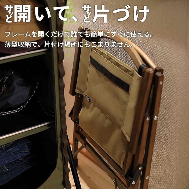 ロースタイルキャンプの必需品 ウッドフレームチェア。