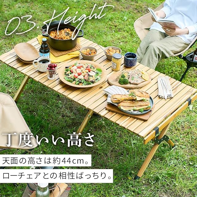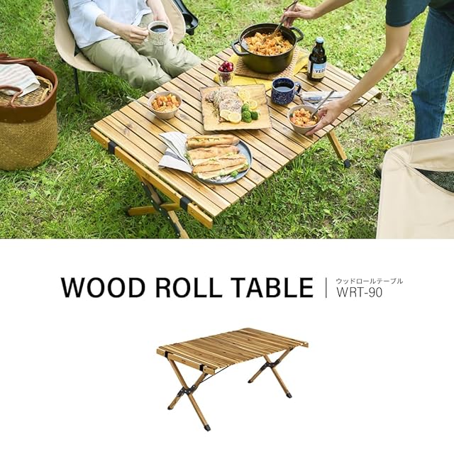 アイリスオーヤマ(IRIS OHYAMA) ウッドロールテーブル 幅約90×奥行約60×高さ約44 アカシア 天然木 収納袋付き 簡単組立 アウトドア キャンプ WRT-90