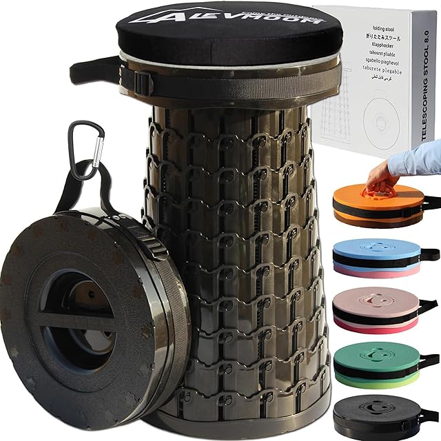 LOCYOP アップグレード 折りたたみ椅子 耐荷重 450kg 折り畳みいす 50cm 高さ調整可能 座面幅30cm 折り畳みイス おりたたみ椅子 おりたたみいす 折りたたみいす アウトドアいす コンパクト 伸縮スツール 1秒開閉可能 キャンプ 釣り 登山 旅行 室内 アウトドア フェス 運動会 観戦 屋内 屋外用(クッション、カラビナ付き) (ブラック)