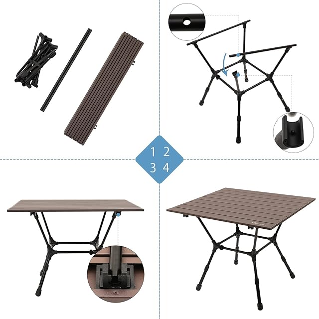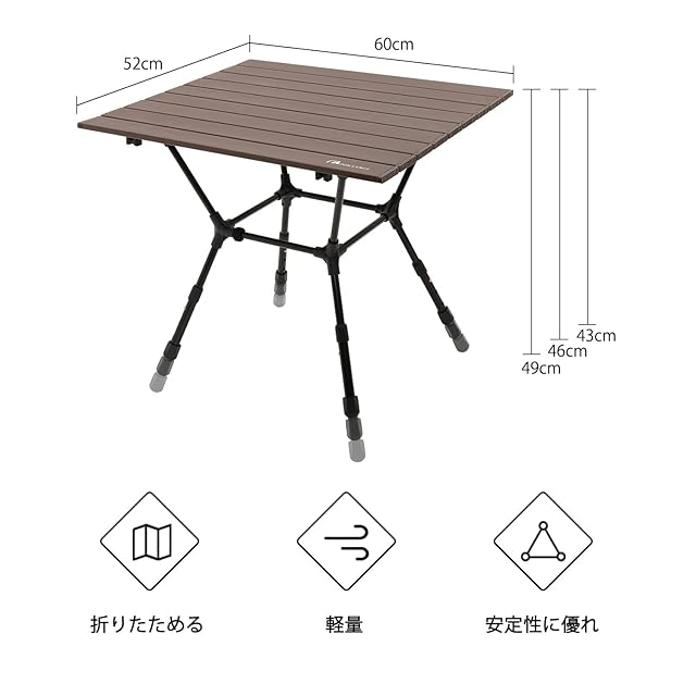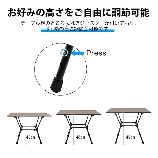 MOON LENCE キャンプ テーブル より安定 アウトドア 3階段高さ調整可 アルミニウム合金 ロールテーブル BBQ 折りたたみ式 コンパクト 耐熱 耐荷重50kg