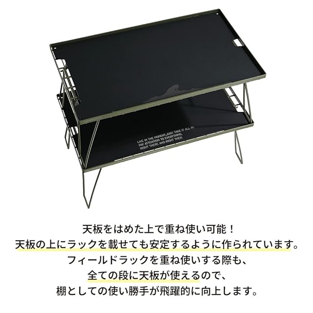 別売のフィールドラックに乗せて使用されます。(※フィールドラックブラック本体は別売です。)