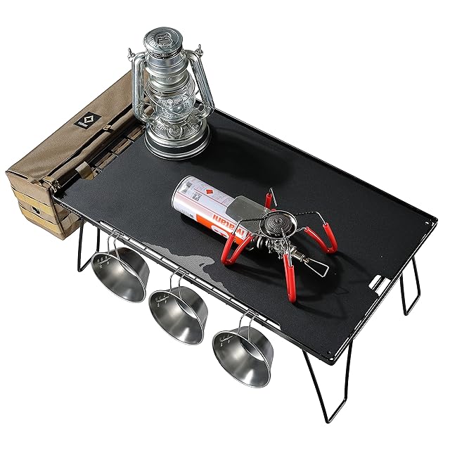 キャンプに似合う落ち着くブラックの天板になっています。