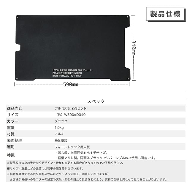 特徴:落ち着いた雰囲気を出す手仕上げ。軽量アルミ製。両面はブラックでリバーシブルのご使用も可能です。