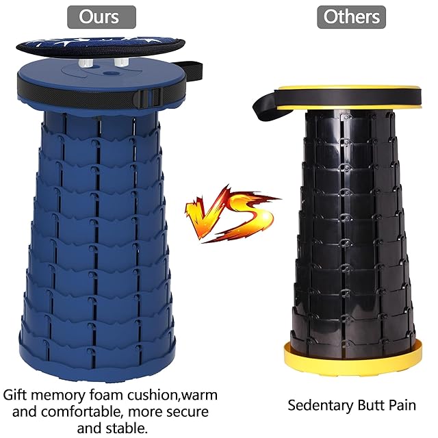 【伸縮自由自在&1秒開閉】 たった1秒で開閉可能、一瞬で引き出せる超便利な折り畳み椅子が登場!使用するときは、少しひねりながら両端を引いて1秒だけで折りたたみ椅子が完成です。収納するときは、逆方向に少しひねりながら両端を押すだけで収納できます。6.5cmから45cmまで高さを調整可能で、非常に便利です。底部が滑り止めになっているので、すべったところに置いても滑りません。小さなお子様からお年寄り、女性まで気軽にご利用いただるアウトドアチェアです。【ご注意】クッション取る付け用の穴が二つと四つ、二種のデザインがランダムになりますので、予めご了承ください。